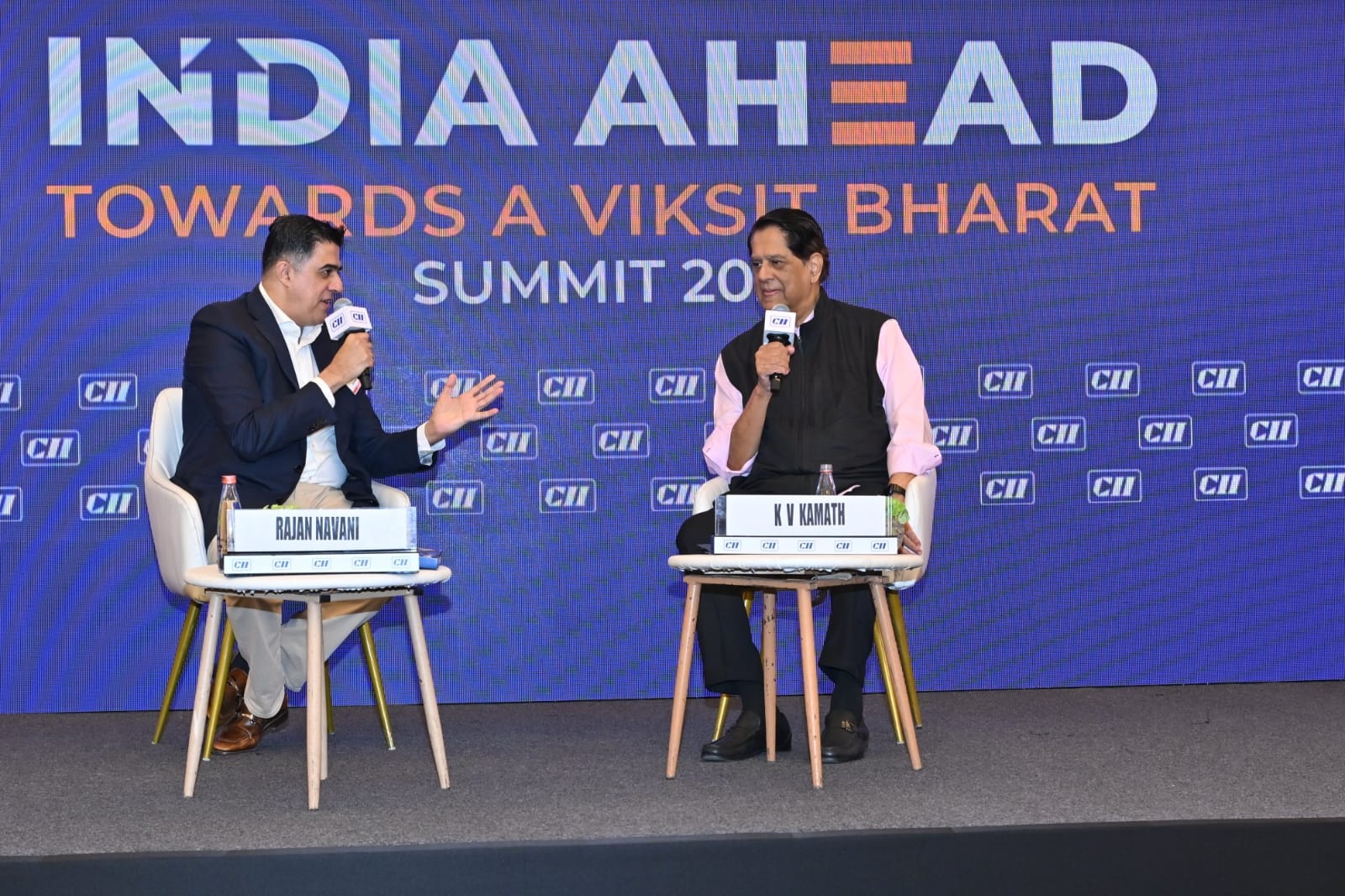 L – R – Mr K. V. Kamath, Past President, CII Chairman Jio Financial Services Ltd., Mr Rajan Navani, Chairman, CII Council on India@100 Show More